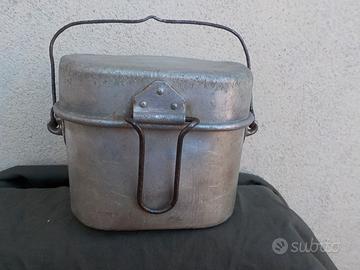 Vecchia Gavetta Militare Italiana, in alluminio,composta da Gavetta e Gamella, in buono stato, integra,i manici sono ossidati,ritrovata in un edificio abbandonato, ripulita con acqua e bicarbonato.Annuncio Validoin Tutta Italia,Spedisco