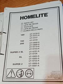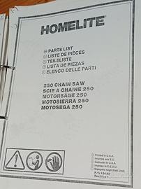 Vendo in blocco fotocopie catalogo parti di ricambio esploso motoseghe Homelite, alcuni modelli visibili in foto, altri modelli: motosega 250,300, 205,CS 40,CS 50, 252, CS4018, CS5020, 290, 340, 360, 330, Super E-Z, C, VI Super 2, VI Super 2 SL, XL-12, SXL - AO (SXL -A0), 240 HG, 240 SL, 245, 410, 410 SL