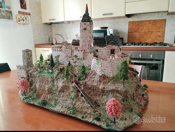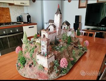 Il progetto è stato ispirato al castello di Burg Falkenstein (Germania) costruito con mattoncini. Ci sono alberelli, omini, animali etc.. misure: lunghezza 70cm, larghezza 47cm, altezza 48cm.
