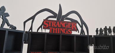 Espositore stampato in 3D In omaggio: 5 supporti per i personaggi che non stanno in piedi da soli (Demogorgone nero, Nancy, Robin usd, erica e Eddie). E altri 5 supporti per gli usd (Steve usd, Dustin usd, hopper usd, will usd, max usd) Ideale per collezionisti che vogliono esporre i propri personaggi in modo ordinato ed elegante La scritta Stranger Things è da incollare (per non rischiare che venga rotta durante il trasporto) I nomi non sono fissati all’espositore e possono essere riposizionati a piacimento