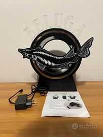 articolo con led di colore bianco. Completo di caricabatterie per caricare l'espositore