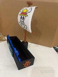 Bellissimo espositore a tema One Piece, realizzato artigianalmente con stampa 3D. Il design riproduce una nave con la celebre bandiera dei pirati di Rufy (cappello di paglia) e base decorata con onde e logo One Piece colorato. Ideale come oggetto da collezione, decorazione per scrivania, camera o vetrina, oppure come regalo per appassionati dell’anime. ✔ Realizzato con cura nei dettagli ✔ Materiali resistenti (PLA stampa 3D) ✔ Colori vivaci e ben definiti ✔ Oggetto unico, non prodotto in serie Possibilità di realizzazioni personalizzate su richiesta!