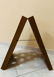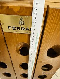 PER 18 BOTTIGLIE IN LEGNO DOPPIA FACCIA APERTURA A TRIANGOLO CON CATENA CENTRALE.
