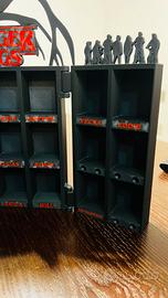 L'espositore è solido, scenografico e perfetto per esposizione su mensole, vetrine o scrivanie. Ogni scomparto è dedicato ai personaggi iconici della serie, rendendolo un pezzo unico per valorizzare la collezione Kinder Joy / Funko.