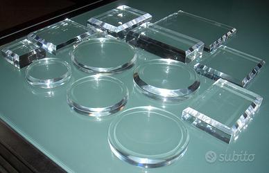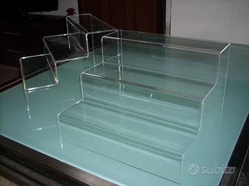 Espositori a gradini in plexiglas colato NUOVI, vendo. Li realizzo con misure personalizzate NON troppo voluminose, anche in versione luminosa o di altre forme. Inoltre realizzo molti altri oggetti, sempre in plexiglas, come: vetrinette, mensole, tavolini, porta monitor o TV, coperchi per giradischi, lampade, teche, espositori per bigiotteria, etc...