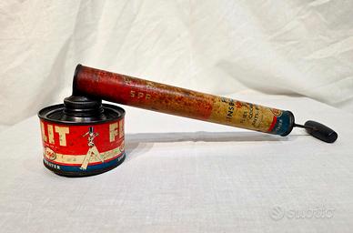 Raro oggetto pubblicitario della ESSO risalente agli anni 50 circa. Nebulizzatore di insetticida, comunemente noto come "pompa" del Flit. Questo dispositivo a pompa manuale veniva utilizzato per spruzzare insetticida, spesso a base di DDT, per combattere mosche e zanzare nelle abitazioni e in ambito agricolo. Condizioni molto buone. Non presenta buchi da corrosione. Funzionante. Le foto fanno parte della descrizione.