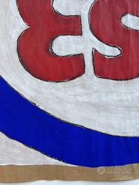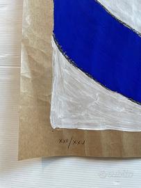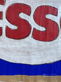 Serigrafia "Esso" di Mario Schifano (1934-1998) da "PROPAGANDA" Firma e tiratura in basso: XXI/XXV Tecnica: Serigrafia materica su carta pacchi Dimensioni senza cornice: 59,5 x 79,5 cm Dimensioni con cornice: 74 × 96 cm Mario Schifano, artista dall'animo ribelle e graffiante, è oggi considerato uno dei più prolifici pittori del secondo dopoguerra. Attira fin da subito la critica realizzando quadri monocromi che offrono l'idea di uno schermo fotografico che in seguito accoglierà numeri, lettere, segnali stradali, marchi della Esso e della Coca Cola. Ha vissuto a New York dove ha frequentato Frank O'Hara, Jasper Johns e Andy Warhol.