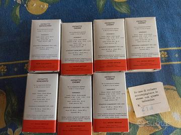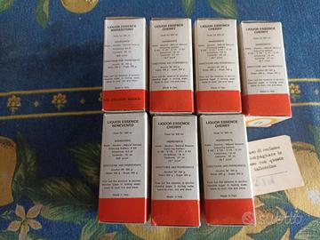 estratti per liquore vintage del marchio Bertolini, oggetti da collezione molto apprezzati per il loro valore storico nel campo della produzione casalinga di liquori, flaconi da 20 ml destinati per circa 1 litro di liquore, risalenti anni 1970/80, 1 di Cherry risulta aperto per assaggio