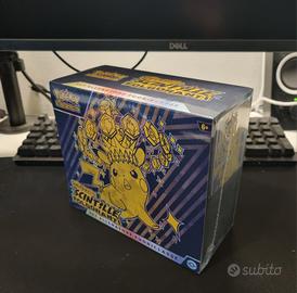 Vendo Elite Trainer Box di Scintille Folgoranti, nuovo e sigillato, perfetto per collezionisti o giocatori.