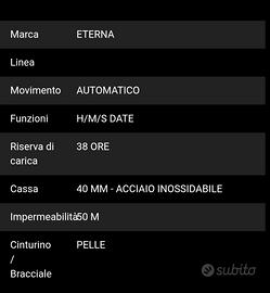 orologio con il cinturino in pelle cassa 40 mm,riedizione del 1939 . edizione limitata 1939 esemplariancora con le pellicole. MAI INDOSSATO.