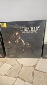Etherfields Board Game Dream Master All in Sundrop Kickstarter Edition Italiano Nuovo Sigillato. Comprende: Sundrop Core Box, Crearures of Etherfields Sundrop, 5th Palyer Expansion Sundrop, Funeral Witch Sundrop, Sphinx campaign Sundrop, Harpy e She-Wolf campaign Sundrop, Thorn Knight Sundrop+ Thorn Kinght Painted, Alternative Advanced Heroes Sundrop, Porta Carte + Card Sleeves + Sleeves for all add-on expansions, Etherfields 2.0 Regolamento migliorato e supplemento di giochi opzionali Tutti gli Stretch goals della versione Kickstater. Tutto Completamente in Italiano, nuovo e sigillato Ritiro a mano disponibile in zona Bollate (MI), Costo spedizione ingombrante 20 euro.