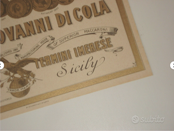 Cromolitografia in stampa oro. Casa manifatturiera di paste