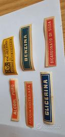 le Etichette venivano invece applicate su bottiglie o vasetti contenenti sciroppi per uso interno, liquidi, lozioni creme e unguenti per uso esterno sempre preparati dal farmacista nel Laboratorio Galenico presente in farmacia .