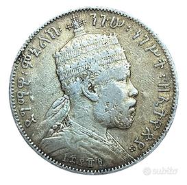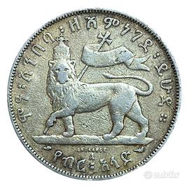 ETIOPIA. Menelik II, 1887-1889 (1895-1897). AR 1/2 Birr 1889 (1897) A. Diritto: Busto dell’imperatore Menelik II rivolto a destra, data in basso. Rovescio: Leone di Giuda: Leone coronato che porta una croce. Riferimento: KM# 4 | Schön 5. Metallo: Argento AR 835/1000 Peso 13.91 g, Diametro 30 mm.