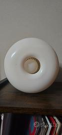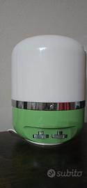 Iconica lampada da tavolo/scrivania Europhon disegnata da Adriano Rampoldi. Questo pezzo si presenta con l'iconico colore Verde Acqua perfettamente abbinato al paralume beige. La combinazione di colori e la forma arrotondata evocano le atmosfere degli anni '70 per un perfetto tocco vintage. Questa bellissima lampada - insieme alla radio AM integrata - rappresenta una vera e propria icona del design dell'era spaziale, ed è citata nel libro "Utopie du tout plastique". La lampada è predisposta con la regolazione d'intensità ,presenta due