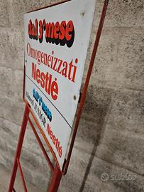 vintage in metallo misura 132 x 30 con tabella pubblicitara omogeneizzati manca 1 fermo nella tabella come in foto