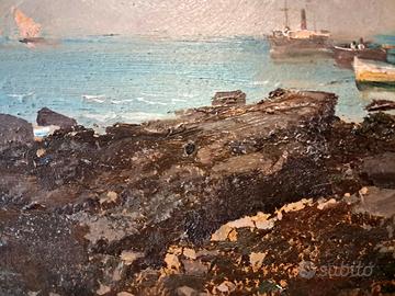 Stupendo olio su tavola di cm 50 x 25 del Maestro macchiaiolo napoletano ove e' raffigurato uno scorcio della costiera amalfitana eseguito intorno agli anni quaranta.