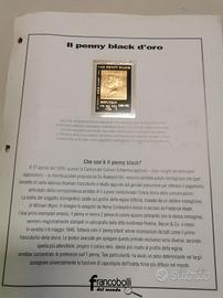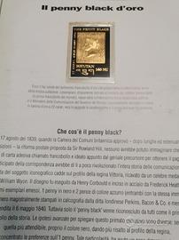Fac simile Penny black d'oro Bhutan laminato oro 22 carati con annessa descrizione Dell'articolo