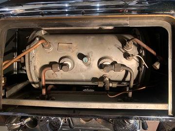 Macchina professionale originale Faema. Versione Legend S2, gruppo E61 con pre-infusione meccanica, corpo acciaio inox, pompa esterna, caldaia rame/ottone.