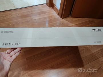 Gru a ponte per terminal container in kit di montaggio. Dimensioni: 654 x 353 x 268 mm. Centro intermodale di attività. Stazione di trasbordo per il traffico di container, basata sul terminal DUSS della compagnia DSD HILGERS nel centro di Basle/Weil-on-the-Rhine. Composta da: una gru a portale cingolata per gestire trasversalmente i dispositivi di carico lungo i binari di trasbordo, binari tronchi e ampie aree di stoccaggio, una gru jib con cabina di controllo, carrello e spreader telescopico che, come le imbracature di sollevamento, raccoglie i container e li colloca nel punto desiderato. Adatto per terminal ferroviari e porti marittimi e fluviali con spedizioni che arrivano anche via terra