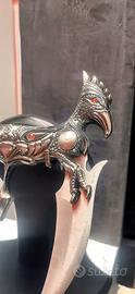 Pugnale doppia lama Fantasy in acciaio inox , con basetta.