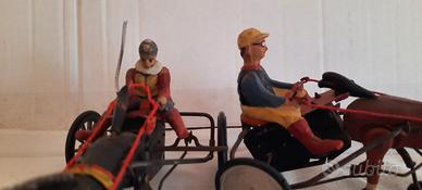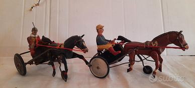 coppia di cavalli sulky e fantino con con carica a molla non trattabile