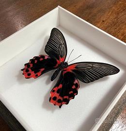 Farfalla vera Papilio rumanzovia, montata a mano in cornice entomologica in legno e vetro da laboratorio entomologico italiano specializzato.