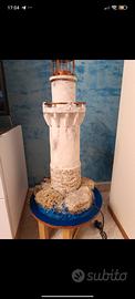 faro nautico con luce realizzato completamente a mano con diversi tipi di materiali. curato in ogni minimo dettaglio. È alto 80cm e largo alla base 30 cm. un ottimo articolo per appassionati di oggetti nautici, modellini o dell'artigianato