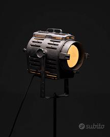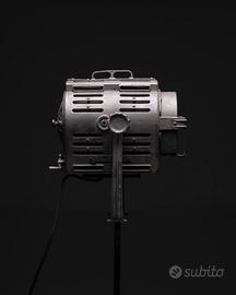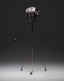 Faro industriale da teatro prodotto da Ing. Marcucci Milano azienda Srl Coemar negli anni ’40-50, completo di piantana originale regolabile in altezza e 3 pratiche ruote. Il pulsante on/off si trova sul faro.