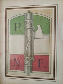 Fascio P.N.F. Partito Nazionale Fascista in cornice legno con vetro Misura esterna cm 26x32