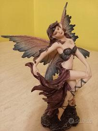 vendo fata in resina, decorata a mano, altezza cm 15 cm. presente, già dall' acquisto, un piccolo difetto sulla ala di sinistra, che non ne compromette la bellezza, come da foto n. 5