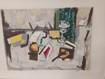 Fausto Pirandello ( 1899 - 1975 ) litografia a colori soggetto natura morta prova di Artista firmata a matita in basso a destra. foglio 70 x 100 in cornice coeva anni 60-70 non spedisco ritiro a mano a Roma no perditempo. Grazie.
