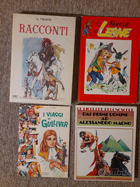 Vendo libri e libretti di favole e racconti degli anni 60-70,per bambini e ragazzi e più precisamente, 4 libri di fiabe della collana classica mondiale della Europea editrice in blocco a 16 euro ; 8 libri misti di avventure western e di pirati ad 5 euro caduno;i libri Illiade ed Odissea insieme a 15 euro; la fiaba sonora di Alibabà a 7 euro; il libro Racconti di Tolstoi della AMZ editrice a 18 euro; il libro Incompreso a 3 euro ; il libro di Cappuccetto Rosso a 5 euro; le favole del leone a 4 euro; i viaggi di Gulliver a 3 euro ; dai primi uomini ad Alessandro Magno a 8 euro ; ho anche vari dischetti 45 giri di fiabe per bambini . La spedizione è a parte.