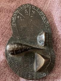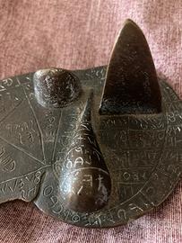 Fedele scultura del noto reperto etrusco Fegato di Piacenza con misure e inscrizioni.