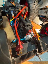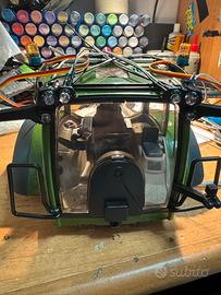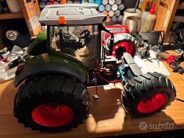 Vendo per esubero mezzi, bruder modificato. Il modello monta 4 motoriduttori da 37 (da 60 e 100) quindi trazione 4x4, lo sterzo e il sollevatore hanno servi da 40kg. Predisposizione del 5 canale gia posteriore, per collegare attrezzi. Telaio stampato in ABS-cf (caricato al carbonio quindi piu resistente) completo di kit luci ant/post/retro/frecce/lampeggianti/ecc.
