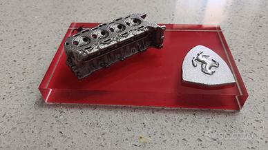 Questo oggetto è unmodellino da collezioneraffigurante una testata motore Ferrari montata su una base in plexiglass rosso con lo scudo del cavallino rampante.. Riproduzione in scala di una testata motore Ferrrari