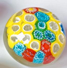 FERMACARTA IN VETRO DI MURANO VINTAGE FIORI. GIALLO.