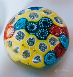 Realizzato con la tecnica della murrina, che prevede la fusione di diversi tipi di vetro per creare motivi floreali colorati.
