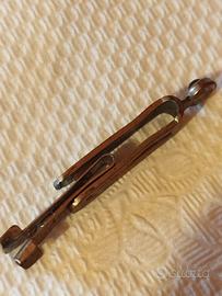 piccolo fermaglio corredato da pietra simile ad ametista con inciso Autoclap e patent n. di probabile periodo anni 40/60