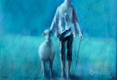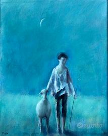 SPLENDIDO SAPORE IN QUESTO QUADRO DEL PITTORE SALENTINO TANTO AMATO DA ME E NON SOLO. RAFFIGURA UN RITORNO ALL'OVILE IN UNA NOTTE LUNARE DOVE LE FIGURE APPENA ACCENNATE SUGGERISCONO TUTTA L'INTENSITA' CHE IL PITTORE METTEVA NEL RAPPRESENTARE LA SUA IDEA DI MONDO. FIRMATO E DATATO 1978. OLIO SU TELA MISURA CM. 40X50 E CON CORNICE 58X68. SPEDIZIONE COMPLICATA, FORSE SOLO DIPINTO.