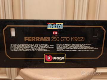 Vendo modello Ferrari 250 GTO 1962 in scala 1:18 con scatola originale mai aperta ma non in perfette condizioni.
