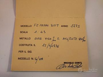 MODELLINO IN ARGENTO E ORO DELLA FERRARI 312T F1 DEL 1975 REALIZZATO DAL MODELLISTA TORINESE MICHELE CONTI, SCALA 1:43