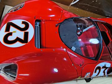 modello in metallo in scala 1/8 con sterzo e sospensioni funzionanti. Motore e parti meccaniche ispezionabili. Vincitori della 24h Daytona del 1964 con Lorenzo Bandini e Chris Amon. Lunghezza 53,6 larghezza 23,4 altezza 12,6.