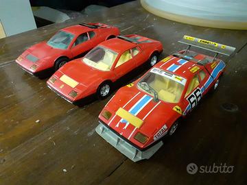Ferrari 512 BB, marca Burago, scala 1\24, piccoli difetti (tergicristalli mancanti, un cerchione mancante, un angolo del kit estetico rotto, decals con alcune piccole mancanze) ma nel complesso in buonissimo stato, modelli decorosi e prezzo d'occasione.