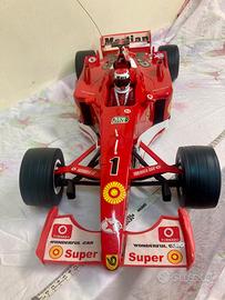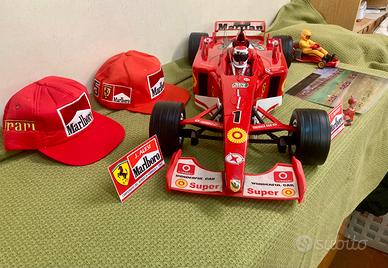 FERRARI F 1 modellismo telecomandata ( con batteria) ma non funziona, ci vuole nuova, E’ lunga cm 72 larga cm 22 , c’è inserito due capellini originali di Michael Schumacher, 2 adesivi originali dell’epoca. Inserisco anche MERCEDES F1 stessa lunghezza.