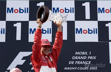 Stupendo Automodello di Pregiato Collezionismo - Ferrari 'BBR F1 F2002 G.P. Francia 2002 - Pilota: Michael Schumacher #1 Campione del Mondo Stagione 2002 ( Scala 1/18 ) Pilota non presente nell'auto, ma con interni dettagliatissimi e con cinture di sicurezza in vero tessuto; vetrina inclusa.