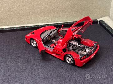 Vendo Ferrari F50 Bburago in scala 1:24, Made in Italy. Modellino in metallo molto bello da esposizione, con porte e cofano apribili, interni ben dettagliati e vano motore visibile. Colore rosso, versione stradale Ferrari F50. Condizioni: buone generali, usato, con normali segni del tempo visibili in foto. Il modellino appare completo e ben conservato. Senza scatola, salvo diversa indicazione. Ideale per: collezionisti Ferrari collezionisti Bburago vintage modellini auto sportive 1:24 esposizione in vetrina Vendita esattamente come da foto.