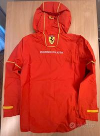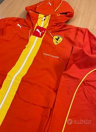 Giacca antipioggia ufficiale PUMA x Scuderia Ferrari – FSP Rain Jacket “Team burnt red-cp” Codice articolo 606691 21 – EAN 4067982182724 Genere uomo – Taglia S (US S / EU S) Colore e design: Rosso “Team Burnt Red” con ampia banda gialla verticale e zip frontale bianca. Scudetto Ferrari sul petto sinistro e grande scudetto sul retro sotto il cappuccio. Scritta “CORSO PILOTA” sul frontale e al centro schiena. Loghi PUMA bianchi su petto e cappuccio; profili e piping gialli su cappuccio e maniche. Tiretti zip brandizzati PUMA. Caratteristiche tecniche e funzionali: Tessuto tecnico idrorepellente; cuciture interne termosaldate. Cappuccio integrato regolabile con coulisse gialla frontale e regolazione posteriore. Fodera a rete nel cappuccio; interno tecnico grigio. Due ampie tasche frontali con patta. Aperture di ventilazione con zip sottoascellari per migliore traspirazione. Polsini regolabili con strap in velcro giallo. Orlo posteriore allungato per maggiore copertura. Tasca interna con zip e tasca interna in rete. Nastro interno con scritta “PASSION AND ACHIEVEMENT”. Patch interna tipo etichetta nome (a scudetto) per compilare name/mob/email. Etichette e provenienza: Cartellini PUMA originali presenti e sigillo rosso ancora fissato. Etichetta interna “PUMA FOREVER BETTER”. Etichetta ufficiale “Ferrari Official Product – NOT FOR SALE” con codice S 6539243 (capo destinato a staff/eventi, non per la vendita al pubblico). Stato: Nuova mai indossata, in condizioni perfette. Conservata nella busta originale; eventuali pieghe sono solo da stoccaggio. Foto reali in alta risoluzione su tutti i dettagli. Note per l’acquirente: Capo ufficiale Scuderia Ferrari “Corso Pilota”, versione staff “Not for Sale”, molto difficile da reperire nei canali retail.