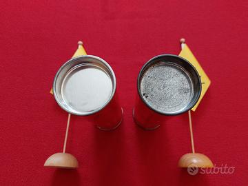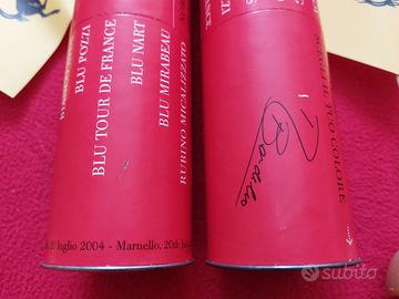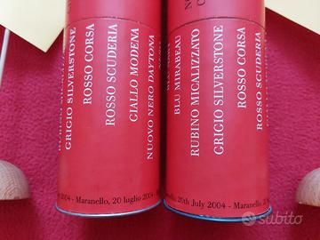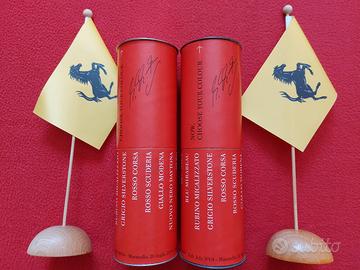 Due astucci cilindrici Ferrari e matite, Maranello 20.07.04 Michael Schumacher Rubens Barrichello. Articolo originale Ferrari prodotto dal Cavallino Rampante per la presentazione vettura F430 a Maranello in data 20 luglio 2004 per clienti selezionati provenienti da tutto il mondo, alla presenza dei piloti che hanno dimostrato la vettura su pista. La scatola di forma cilindrica è dotata di due coperchi e contiene matite con rivestimento verniciato come le varianti di vernice carrozzeria per la F430. In totale sono 40 matite, la confezione originale ne prevede 16. Dimensioni box: altezza 20,5 cm circa e diametro 6,5 cm circa. Altezza matite: 17 cm circa Oltre alle firme dei piloti Schumacher e Barrichello (non sono firme autografe ma elementi del design della confezione) si segnala una particolarità: alla base di ciascun cilindro è ripetuta due volte la scritta "Maranello, 20 luglio 2004" e due volte "Marnello, 20th July 2004" dunque un curioso errore grafico. NB: Una scatola presenta una rigatura di 1 cm circa e l'altra un minuscolo graffio. Vedere ultima foto della gallery. Altre foto disponibili su richiesta, il limite di Subito.it è sei foto per ogni listing. Prezzo €1.200 Condizione: usato ben conservato. Un astuccio era sempre custodito in armadio chiuso, l'altro esposto in un appartamento non abitato. La bandierina gialla non è in vendita serve per evitare uso di terzi delle mie immagini di questo annuncio. Pagamento: bonifico bancario anticipato Spedizione: DHL Express (con consegna il giorno successivo alla spedizione per ordini ritirati dal corriere entro giovedì ore 12).