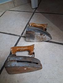ferri da stiro a carbone vintage, con evidenti segni di usura del tempo